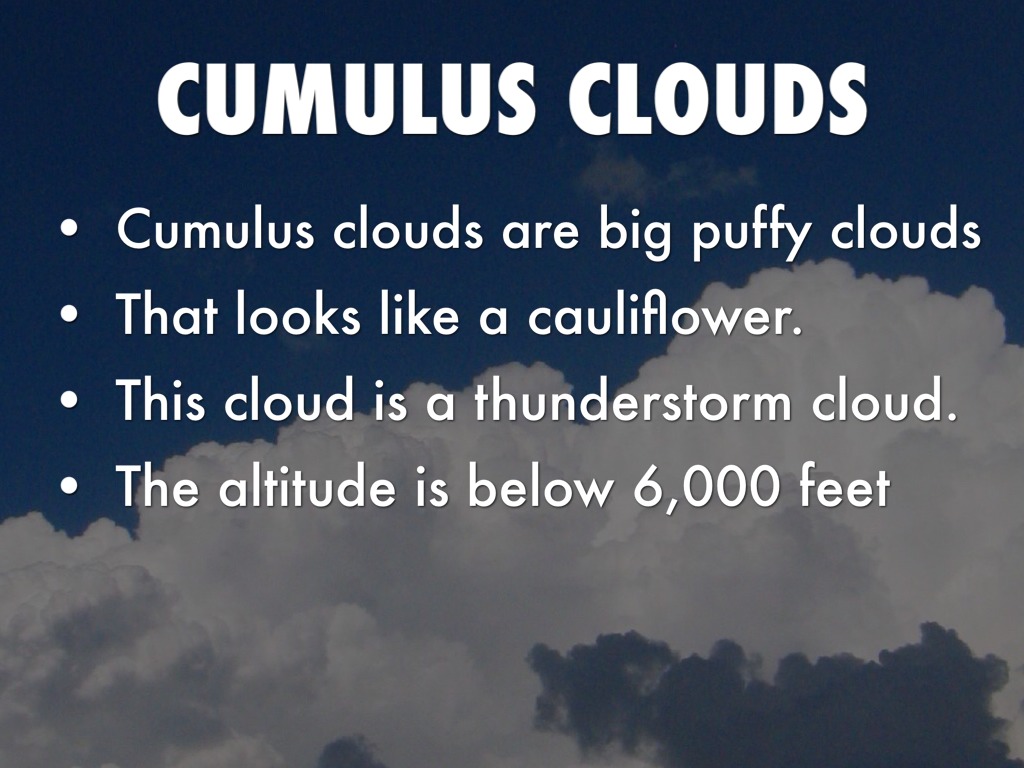 Cumulus clouds are big puffy clouds