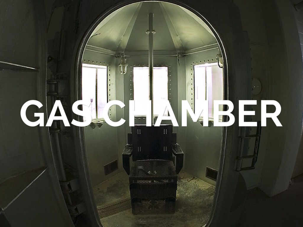 Death by an apparatus (the gas chamber) into which poisonous or asphyiant gas is introduced as a method of execution