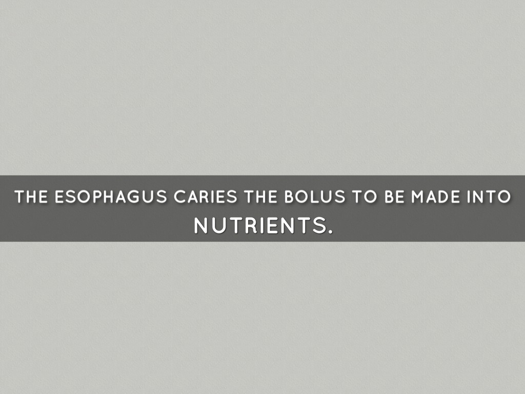 THE ESOPHAGUS CARIES THE BOLUS TO BE MADE INTO