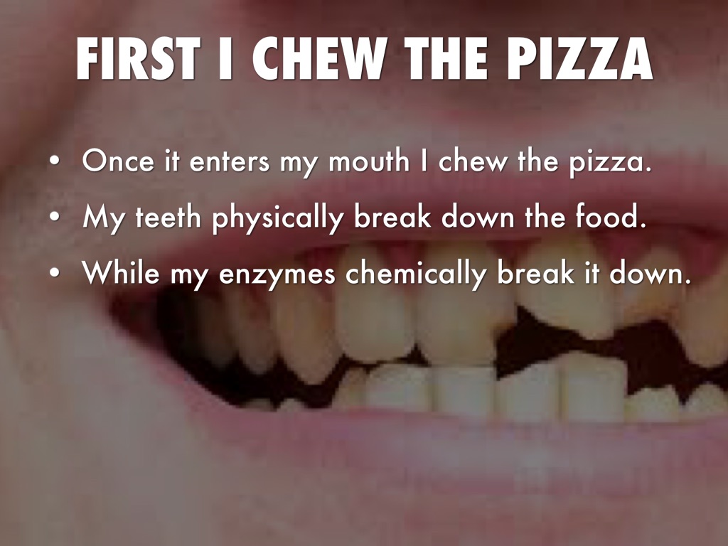 Once it enters my mouth I chew the pizza.