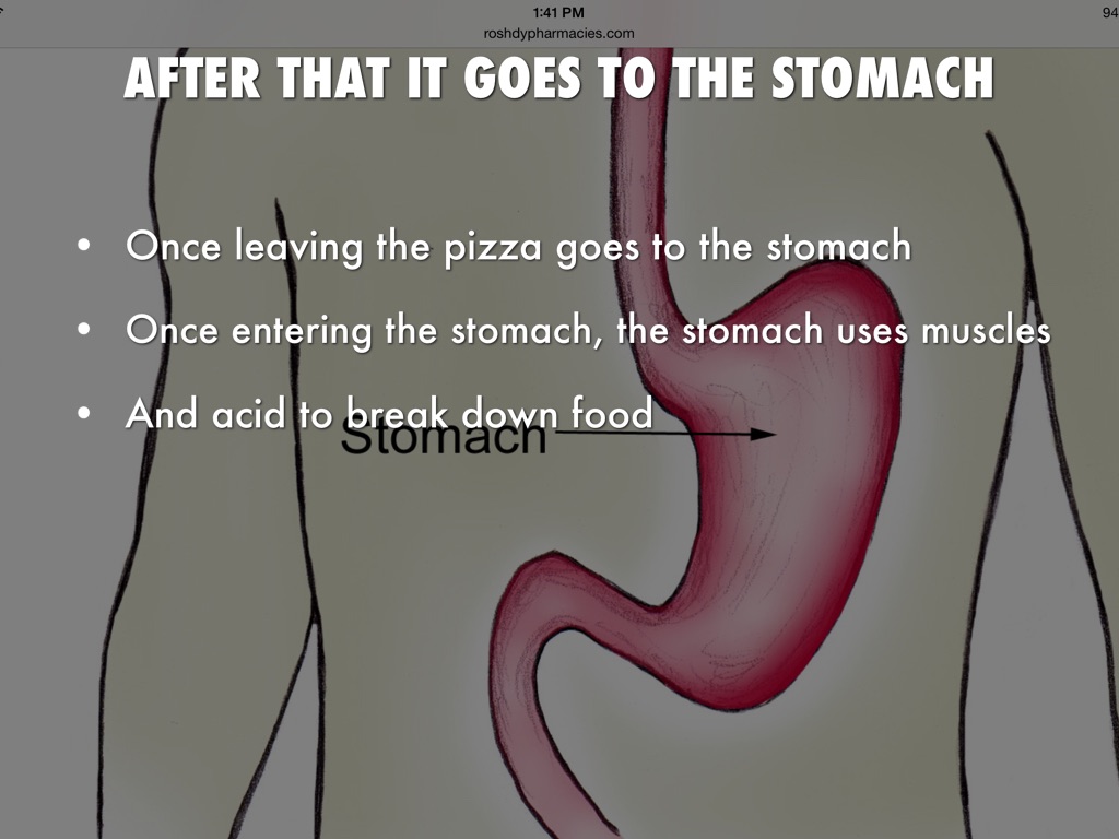 Once leaving the pizza goes to the stomach