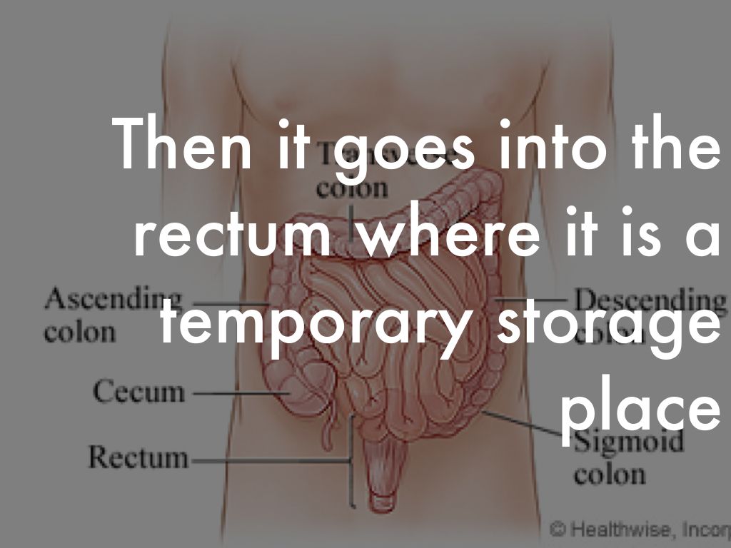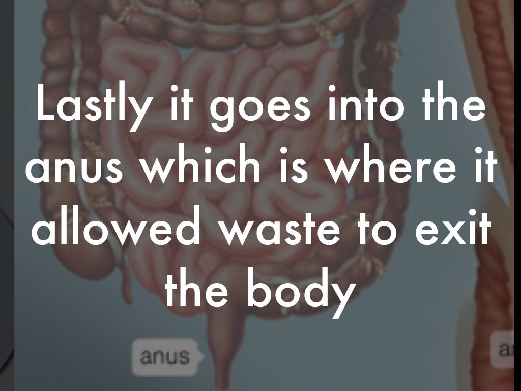 Lastly it goes into the anus which is where it allowed waste to exit the body