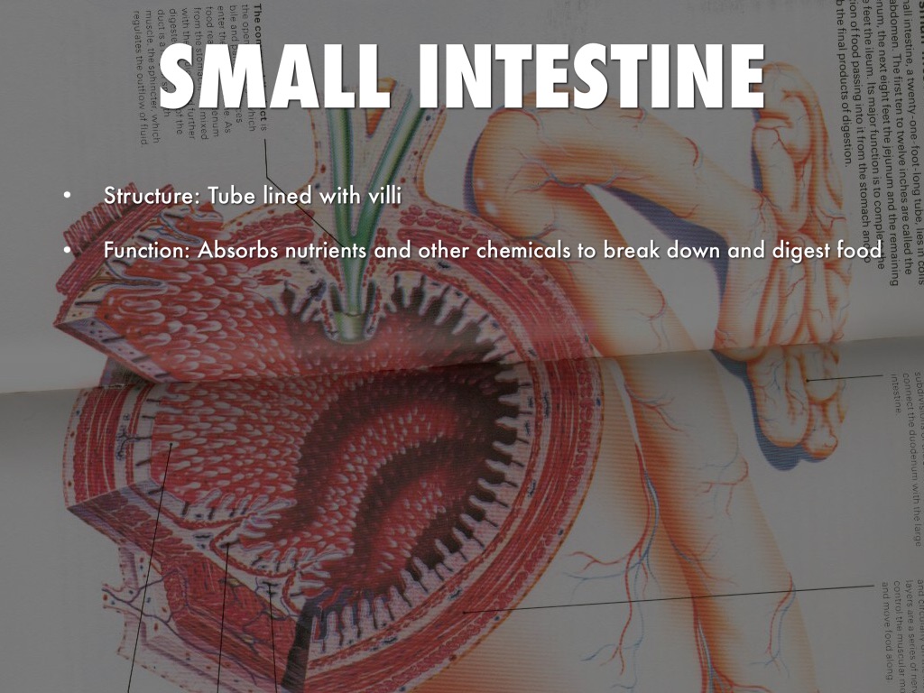 Function: Absorbs nutrients and other chemicals to break down and digest food