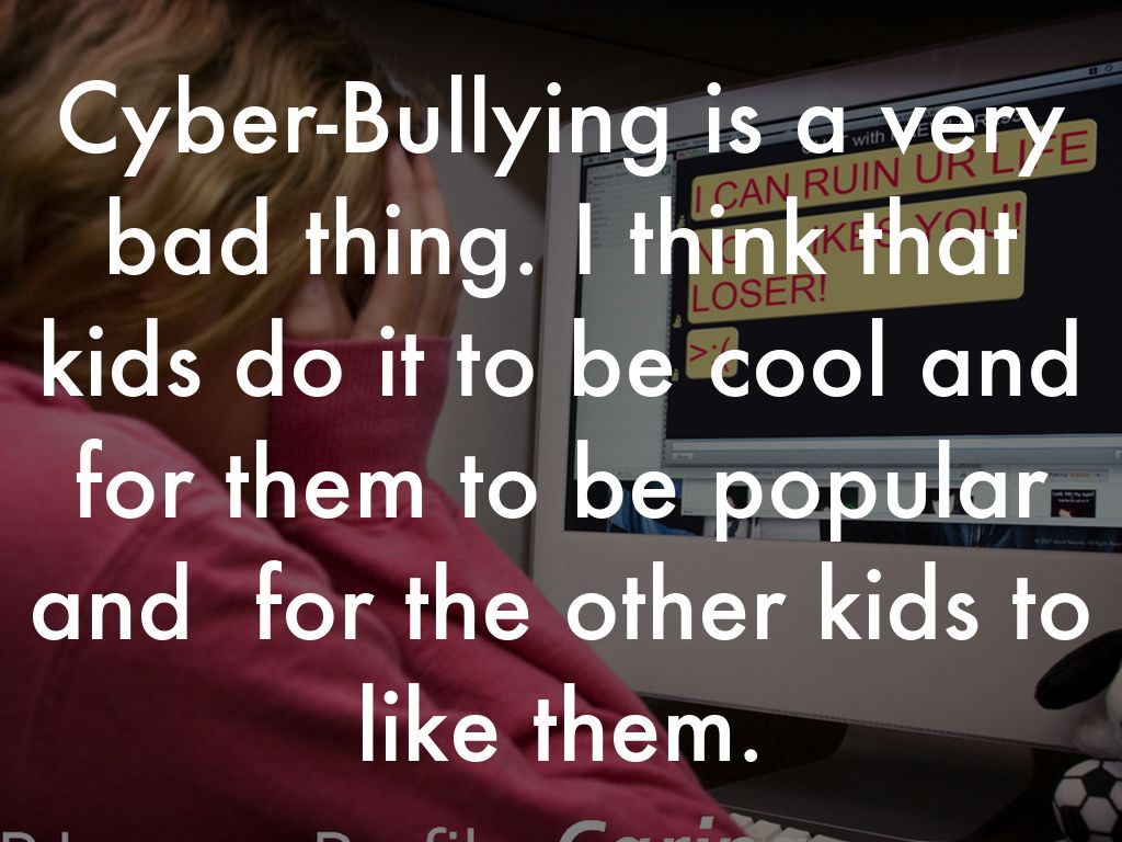 Cyber-Bullying is a very bad thing. I think that kids do it to be cool and for them to be popular and for the other kids to like them.