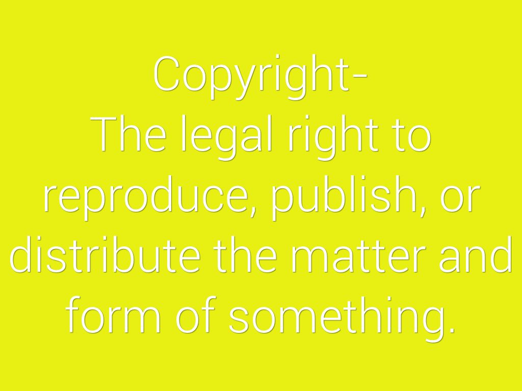 The legal right to reproduce, publish, or distribute the matter and form of something.