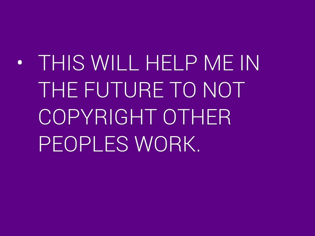 - THIS WILL HELP ME IN THE FUTURE TO NOT COPYRIGHT OTHER PEOPLES WORK.