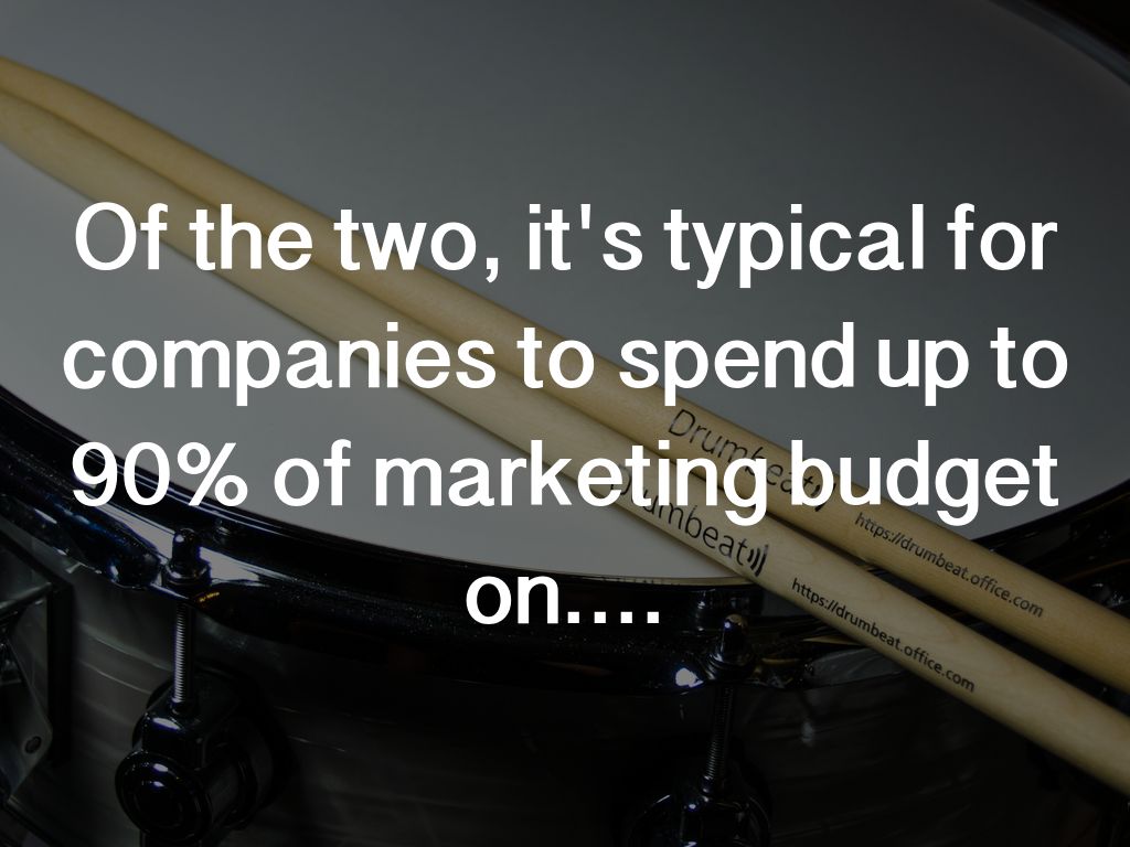Of the two, it's typical for companies to spend up to 90% of marketing budget on....