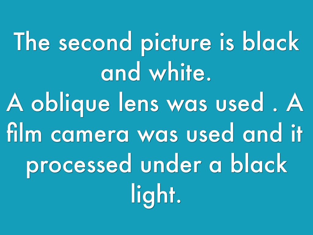 A oblique lens was used . A film camera was used and it processed under a black light.