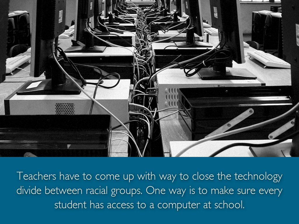 Teachers have to come up with way to close the technology divide between racial groups. One way is to make sure every student has access to a computer at school.