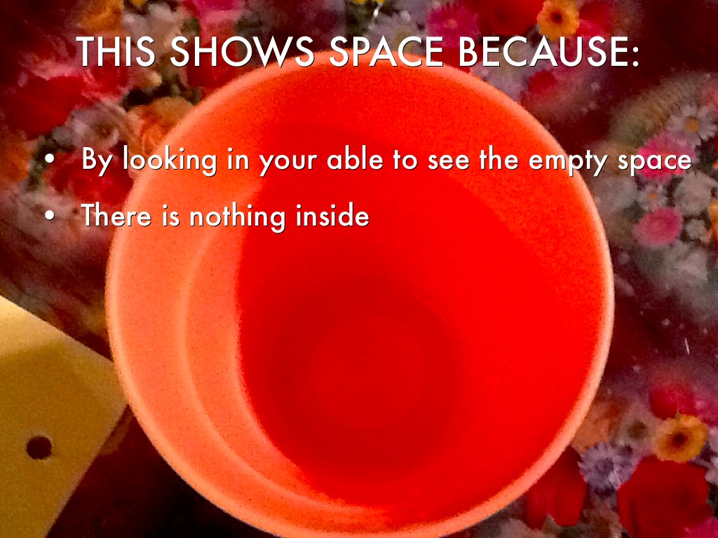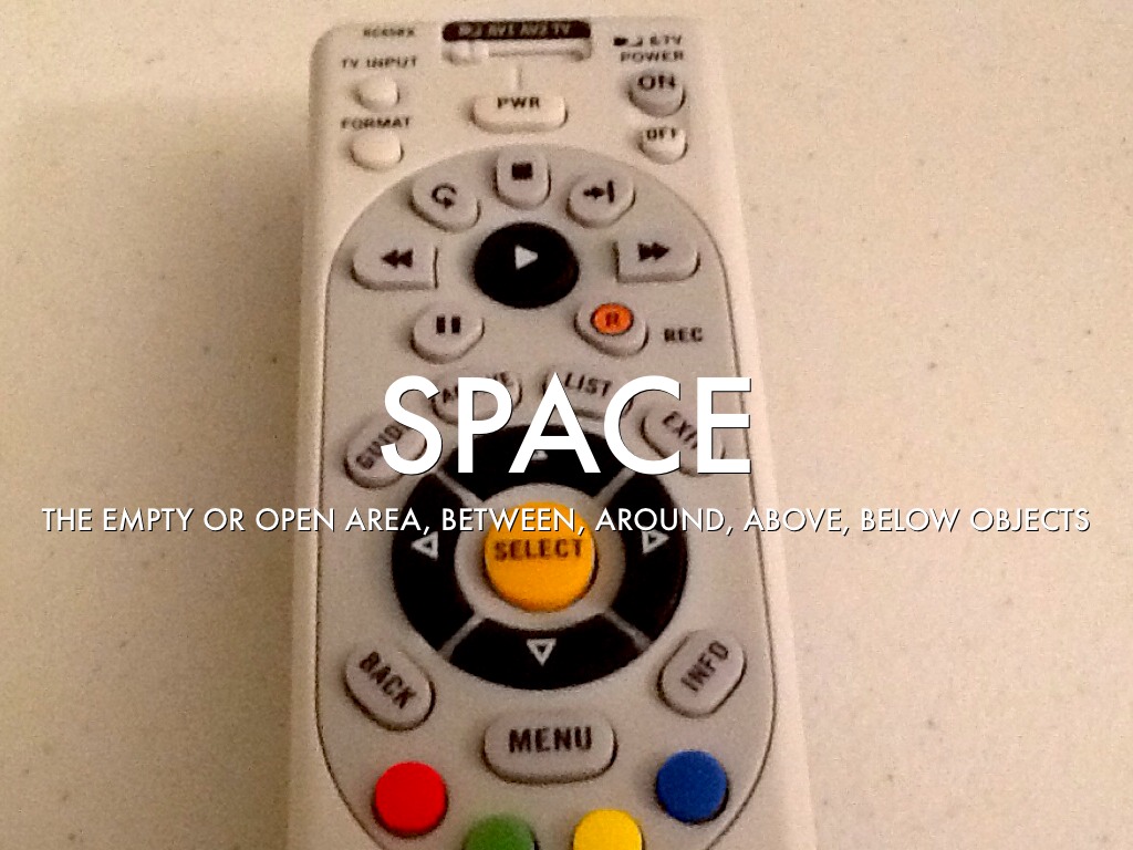 THE EMPTY OR OPEN AREA, BETWEEN, AROUND, ABOVE, BELOW OBJECTS
