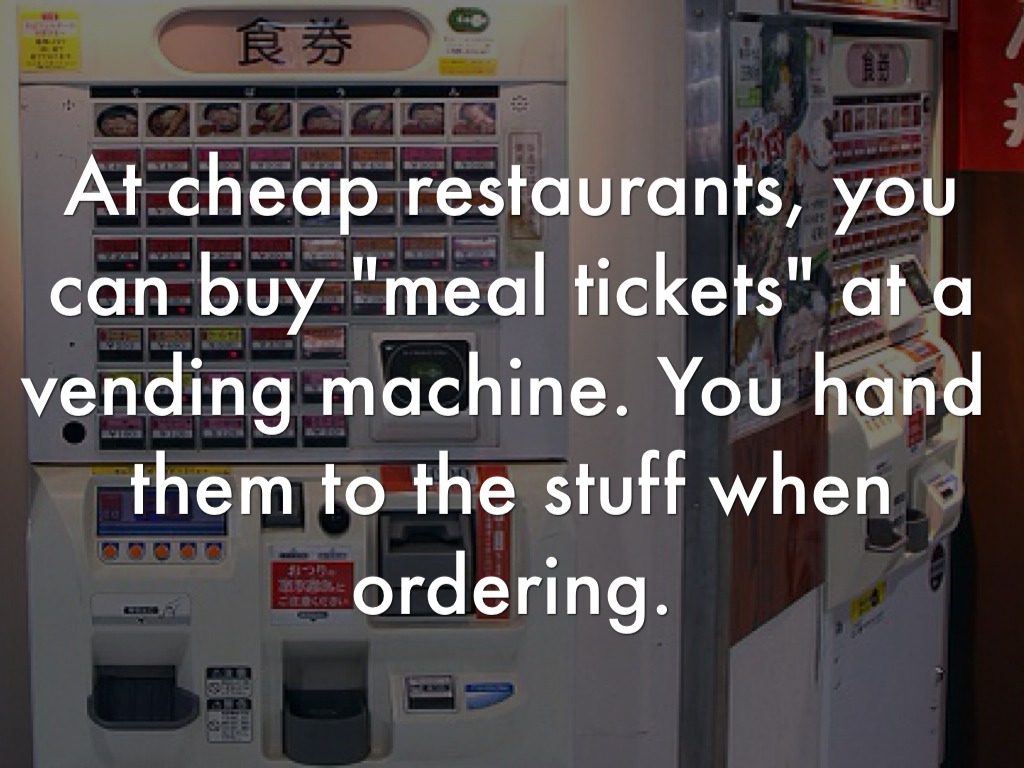 At cheap restaurants, you can buy "meal tickets" at a vending machine. You hand them to the stuff when ordering.