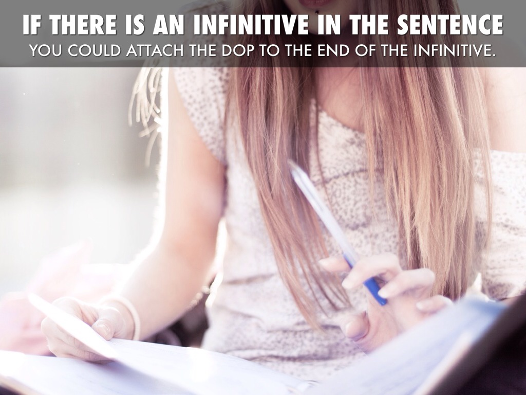 YOU COULD ATTACH THE DOP TO THE END OF THE INFINITIVE.