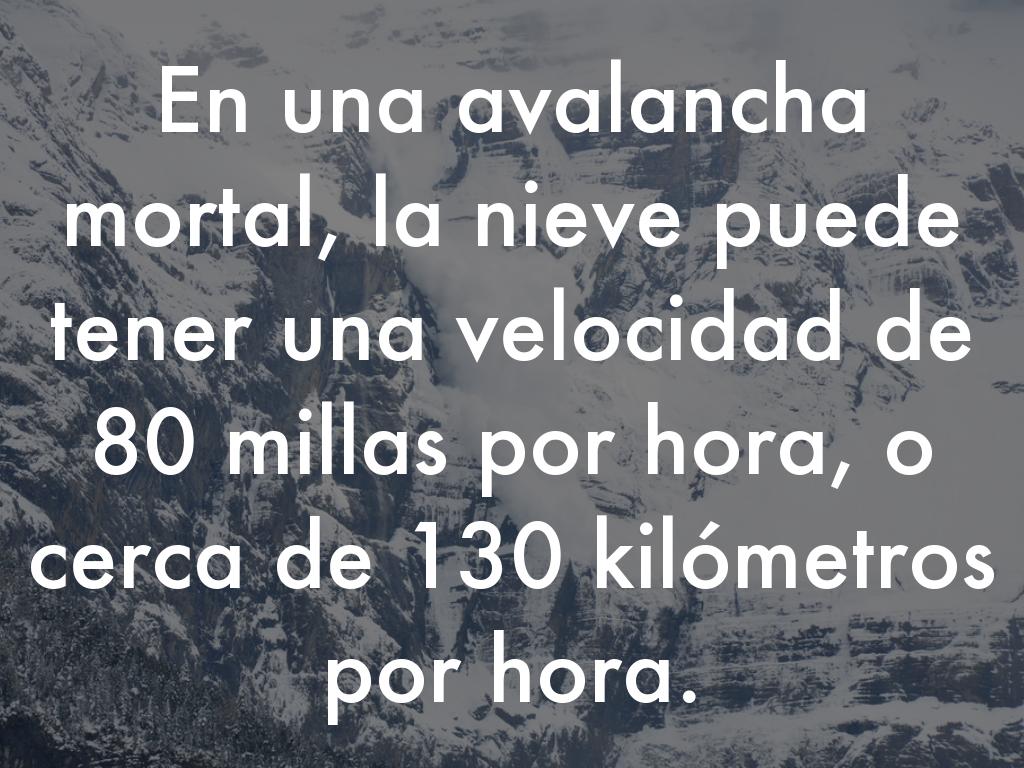 En una avalancha mortal, la nieve puede tener una velocidad de 80 millas por hora, o cerca de 130 kilómetros por hora.