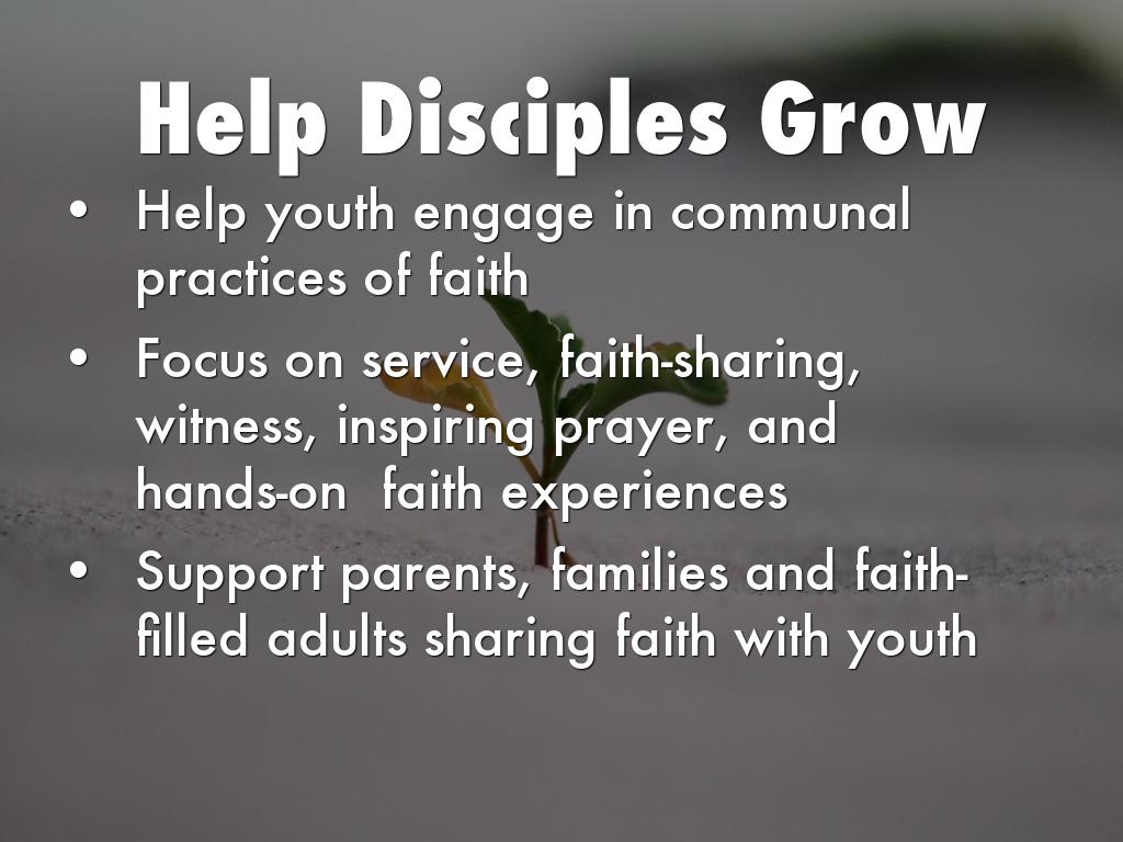 • Focus on service, faith-sharing, witness, inspiring prayer, and hands-on faith experiences