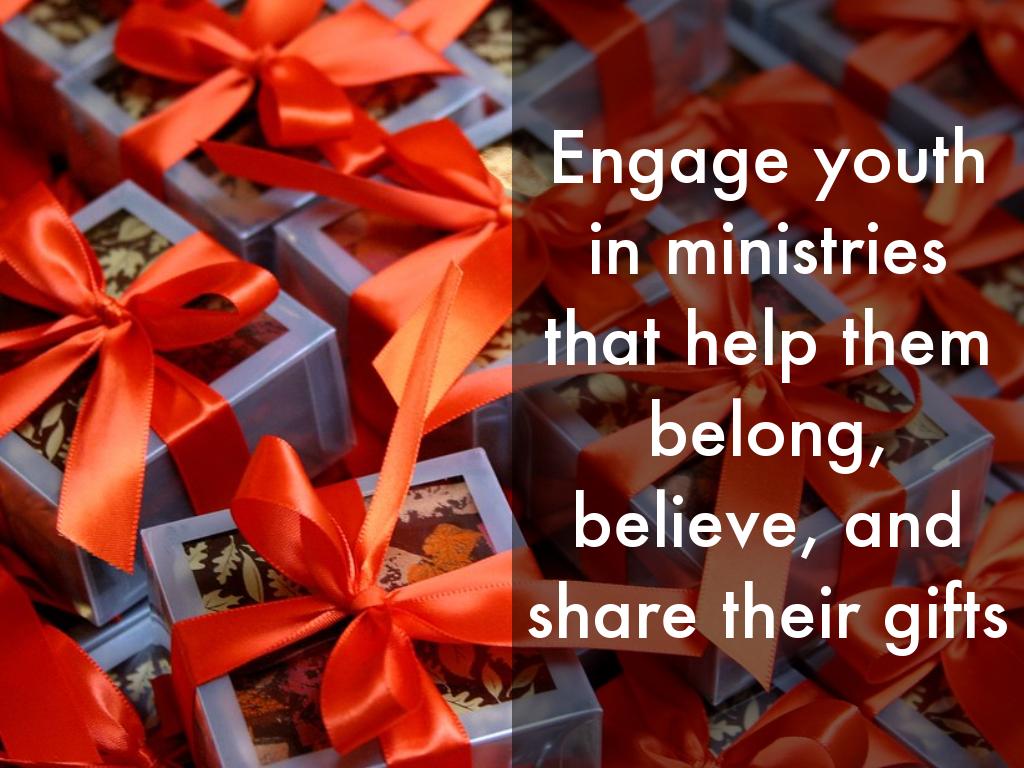 Engage youth in ministries that help them belong, believe, and share their gifts