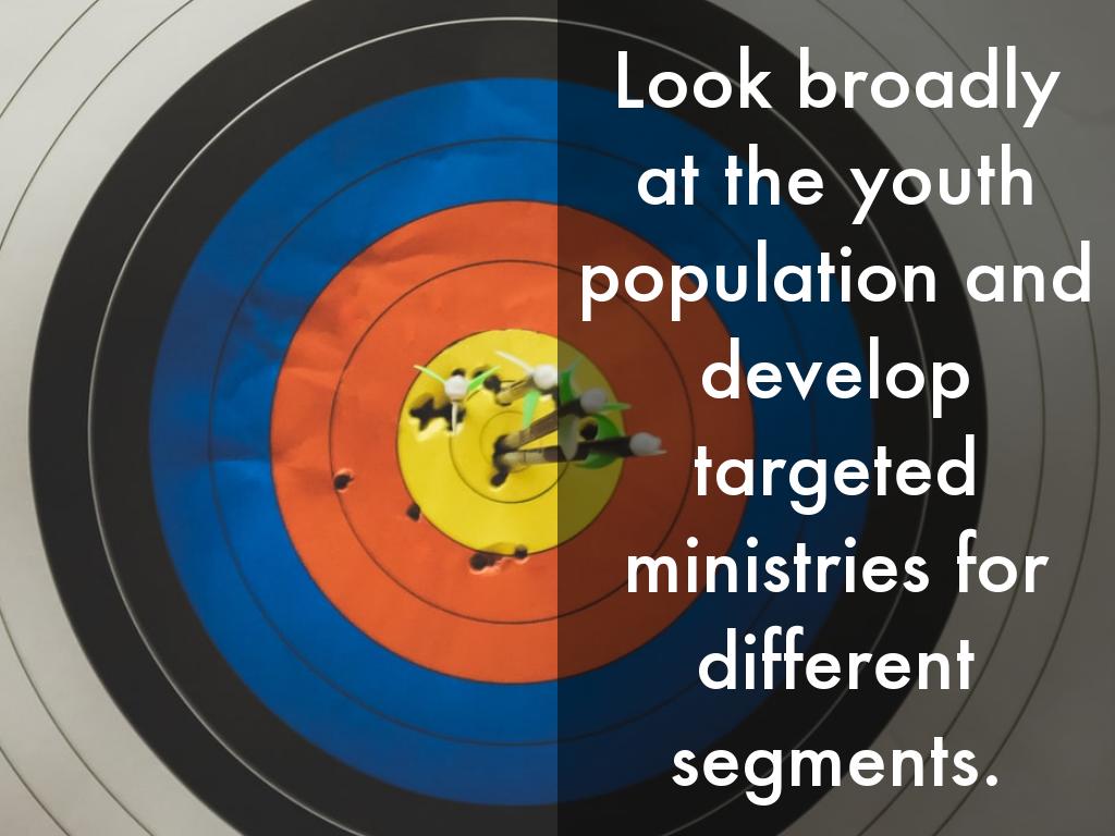 Look broadly at the youth population and develop targeted ministries for different segments.
