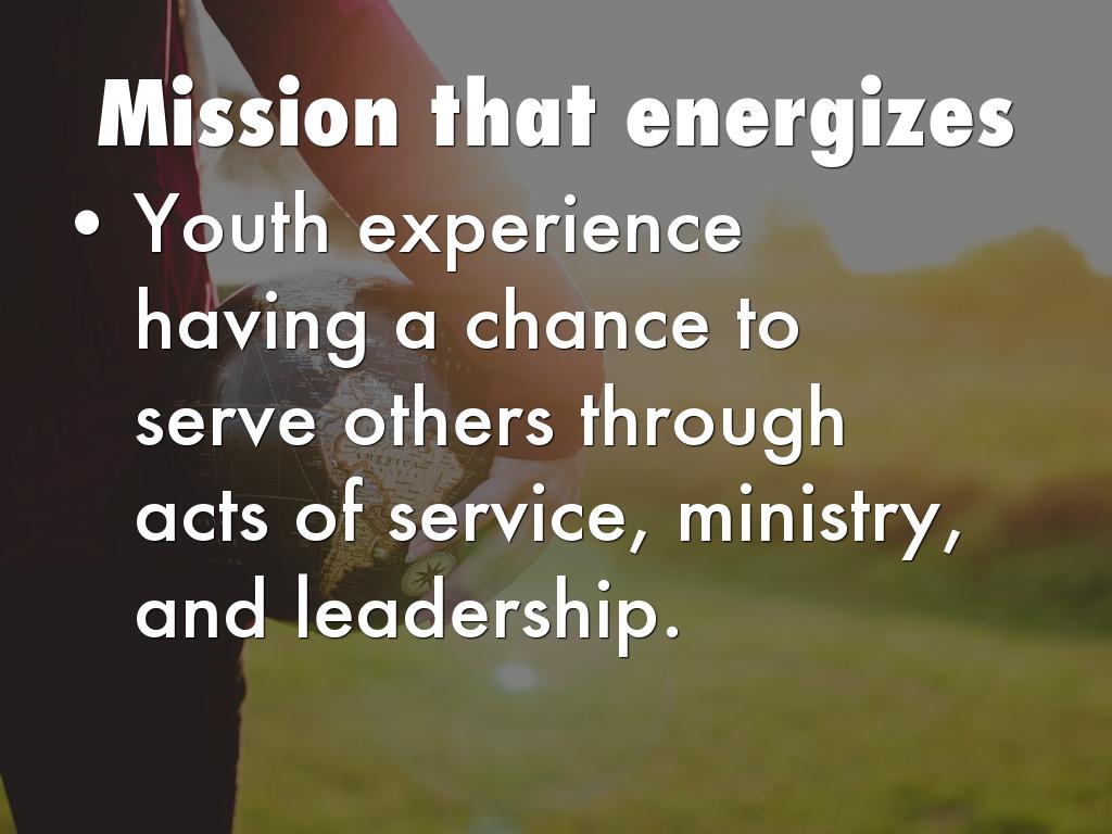 • Youth experience having a chance to serve others through acts of service, ministry, and leadership.