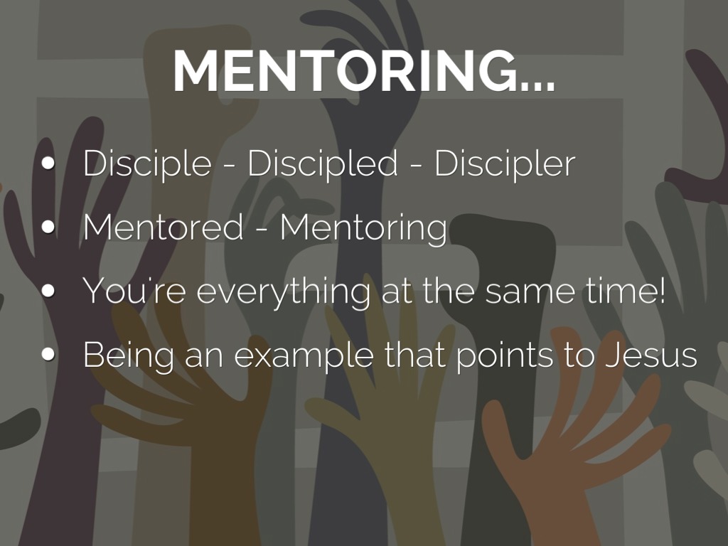 As a mentor you're being both a disciple and a discipler, a mentee and a mentor! At the same time as you follow Jesus, and have your human mentors as counsellors in the faith, you are discipling others. We're on a journey together, and Jesus is our big Teacher and Rabbi!