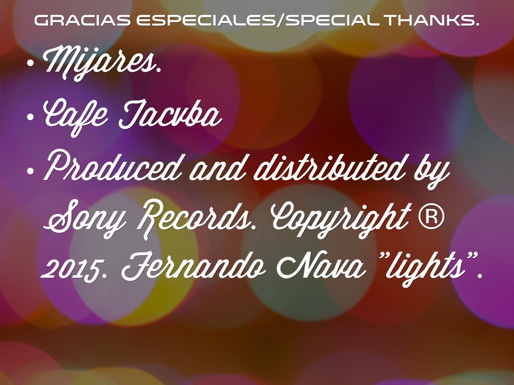 • Produced and distributed by Sony Records. Copyright ® 2015. Fernando Nava "lights".