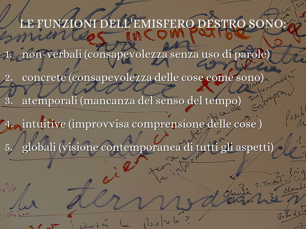 Le funzioni dell'emisfero Destro sono: