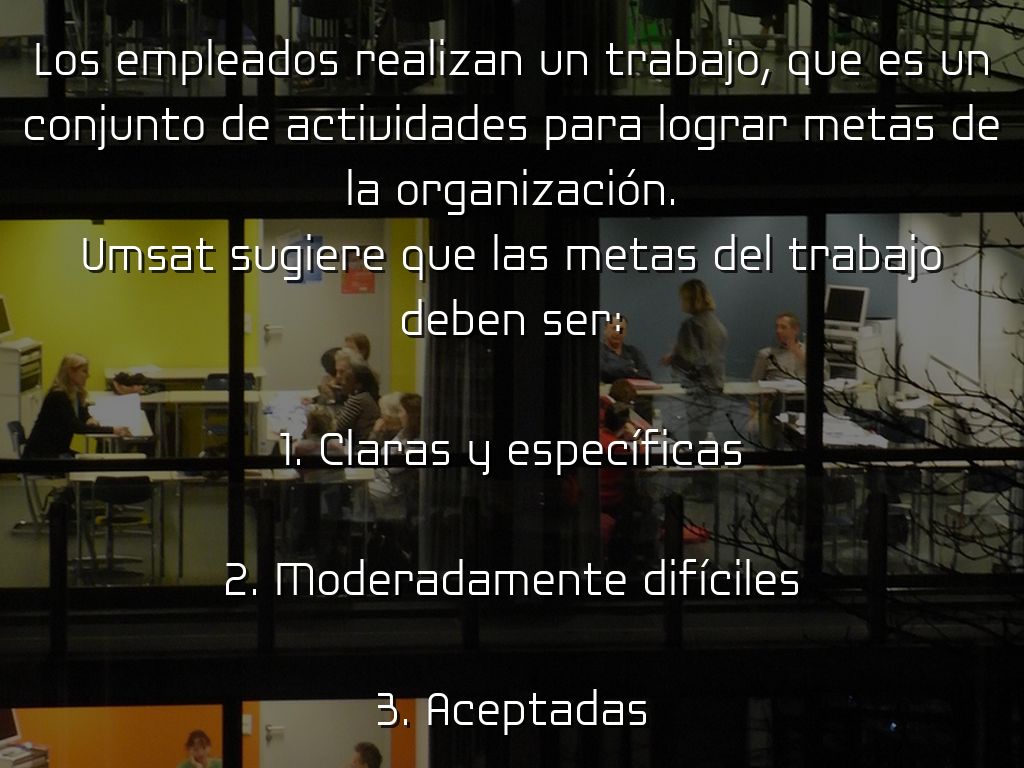 Los empleados realizan un trabajo, que es un conjunto de actividades para lograr metas de la organización.