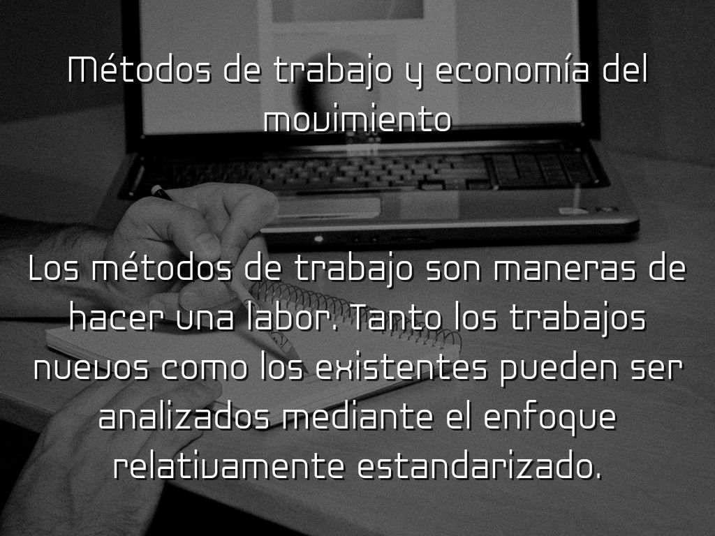 Los métodos de trabajo son maneras de hacer una labor. Tanto los trabajos nuevos como los existentes pueden ser analizados mediante el enfoque relativamente estandarizado.