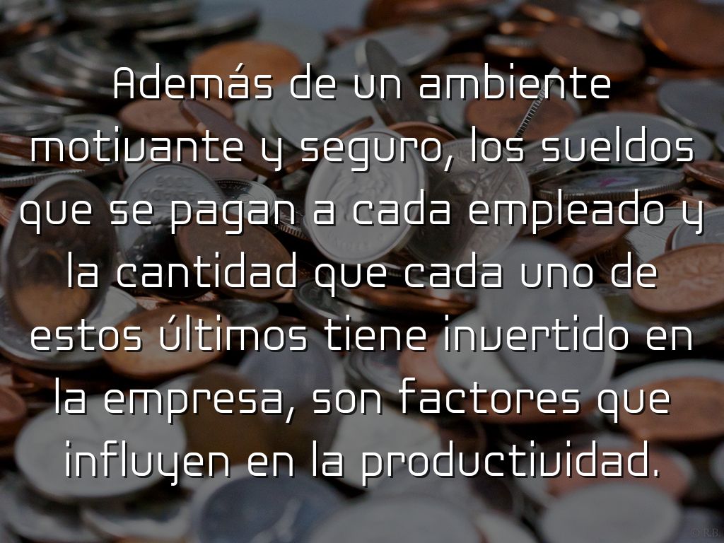 Además de un ambiente motivante y seguro, los sueldos que se pagan a cada empleado y la cantidad que cada uno de estos últimos tiene invertido en la empresa, son factores que influyen en la productividad.