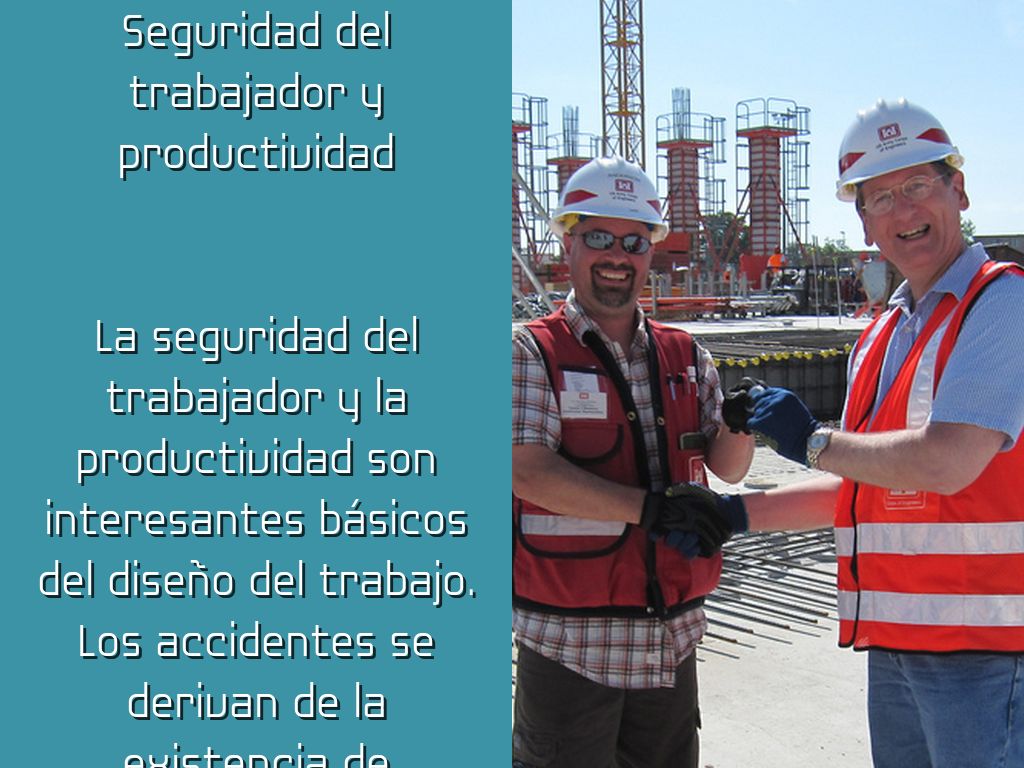 La seguridad del trabajador y la productividad son interesantes básicos del diseño del trabajo. Los accidentes se derivan de la existencia de instalaciones peligrosas y empleados o administradores negligentes.