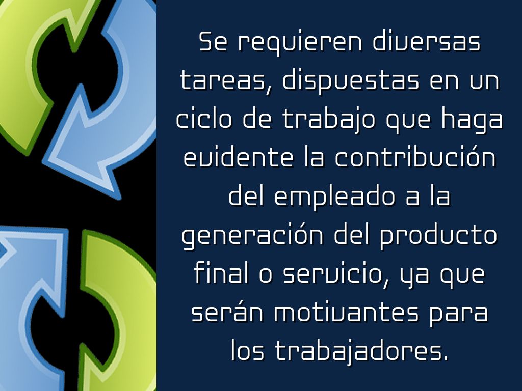Se requieren diversas tareas, dispuestas en un ciclo de trabajo que haga evidente la contribución del empleado a la generación del producto final o servicio, ya que serán motivantes para los trabajadores.