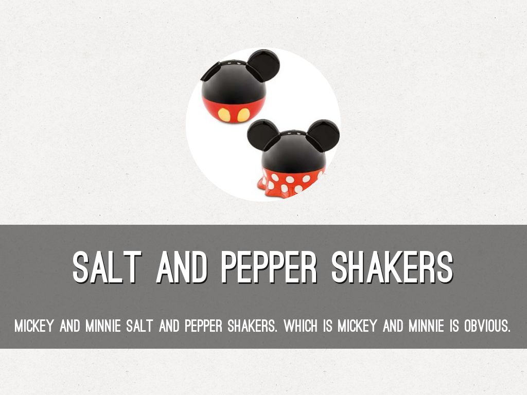 Mickey and Minnie salt and pepper shakers. Which is Mickey and Minnie is obvious.