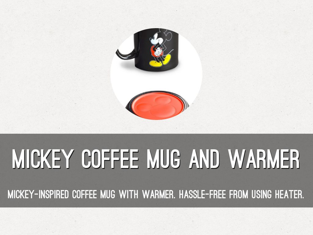Mickey-inspired coffee mug with warmer. Hassle-free from using heater.