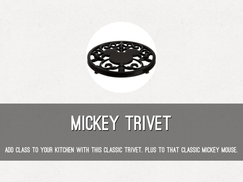 Add class to your kitchen with this classic trivet. Plus to that classic Mickey Mouse.