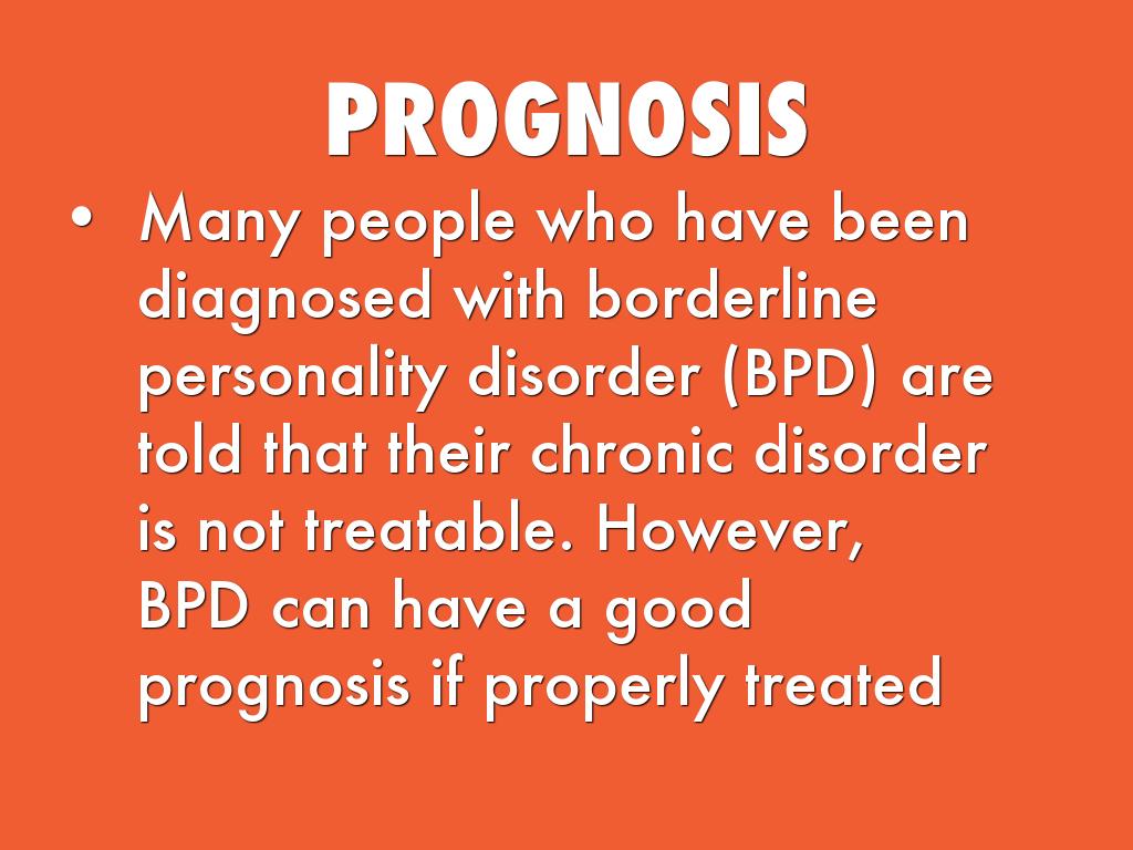 Many people who have been diagnosed with borderline personality disorder (BPD) are told that their chronic disorder is not treatable. However, BPD can have a good prognosis if properly treated