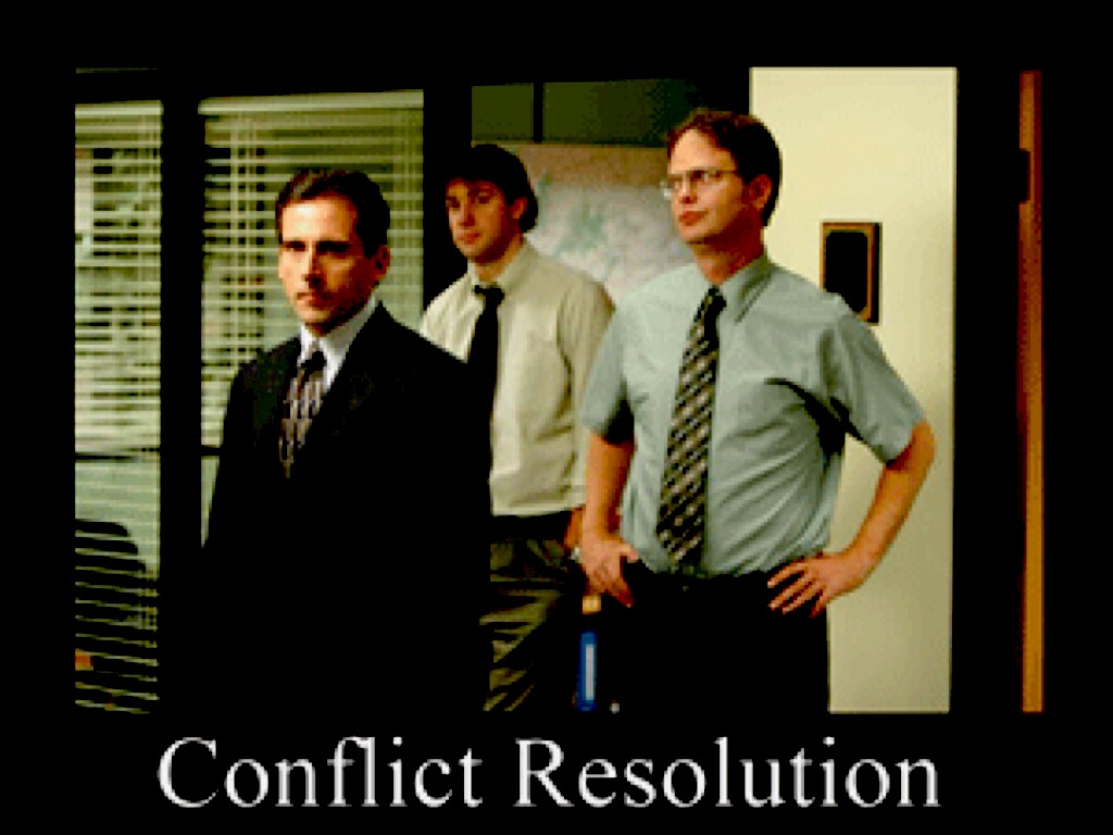 https://www.youtube.com/watch?v=M67Nq9HM3iIThis clip is about Micheal Scott (their boss) sitting down to try to be an impartial third party and mediate the office disputes.
