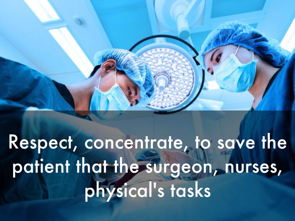 Respect, concentrate, to save the patient that the surgeon, nurses, physical's tasks