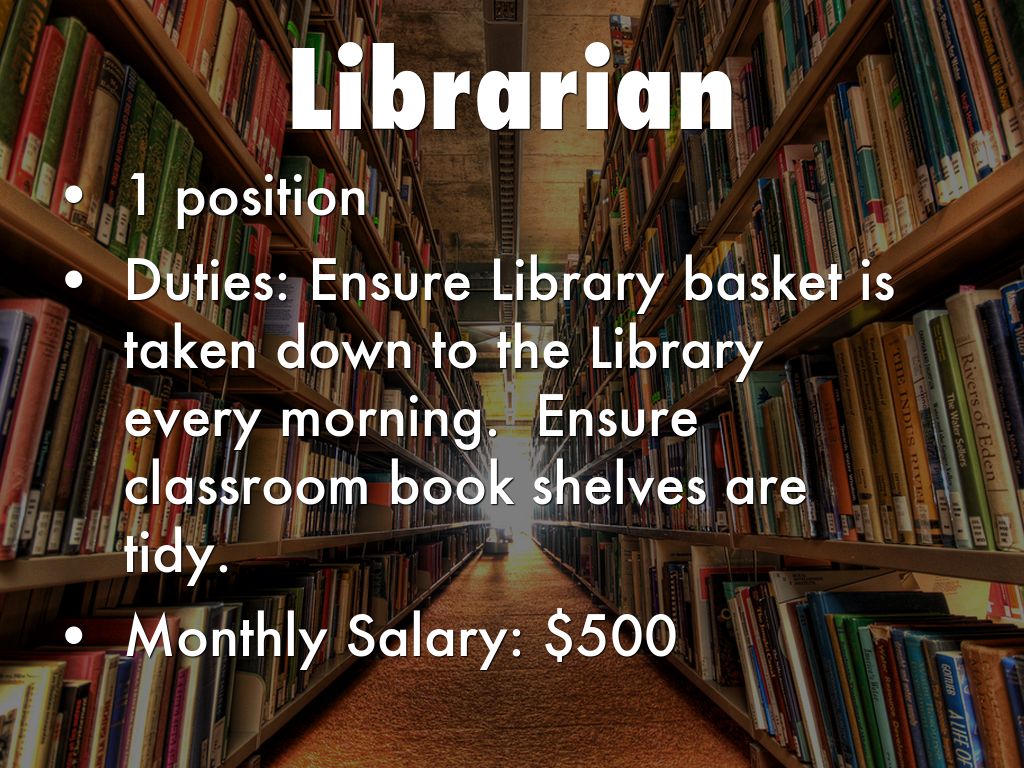 Duties:Hand out papers and materials to students. Collect papers or homework from students when asked. Organize the class supply shelves and keep them neat.