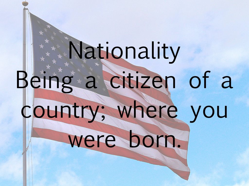 Being a citizen of a country; where you were born.