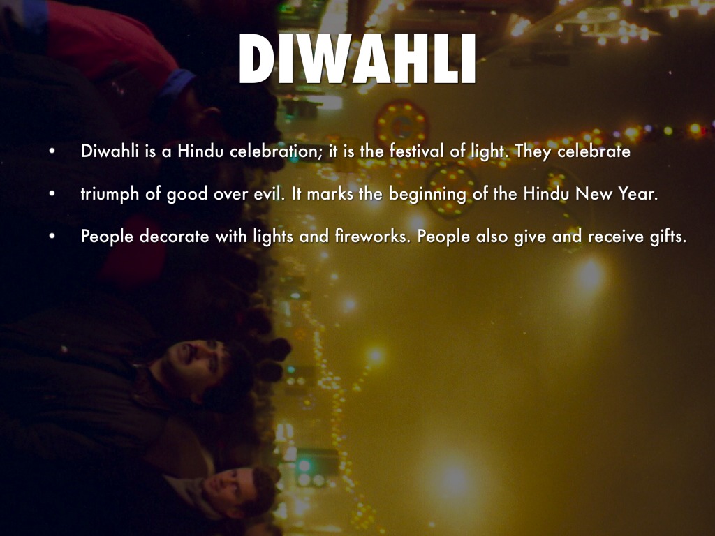 Diwahli is a Hindu celebration; it is the festival of light. They celebrate