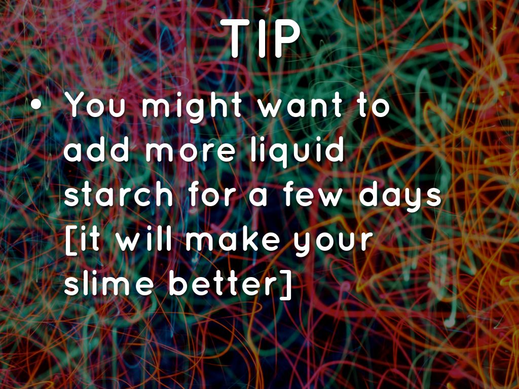 You might want to add more liquid starch for a few days [it will make your slime better]