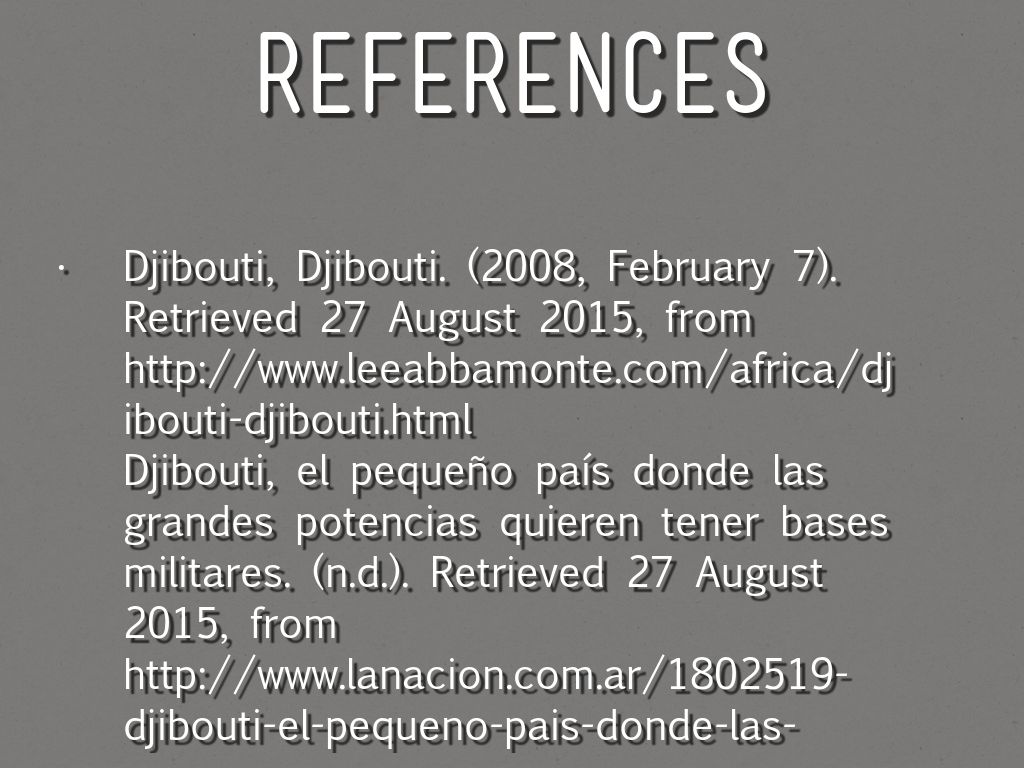 Citations, Quotes & Annotations Djibouti, Djibouti. (2008, February 7). Retrieved 27 August 2015, from