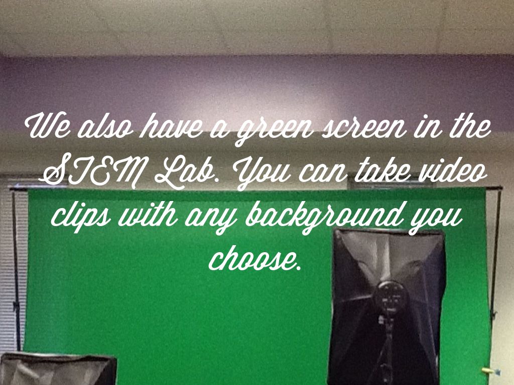 We also have a green screen in the STEM Lab. You can take video clips with any background you choose.