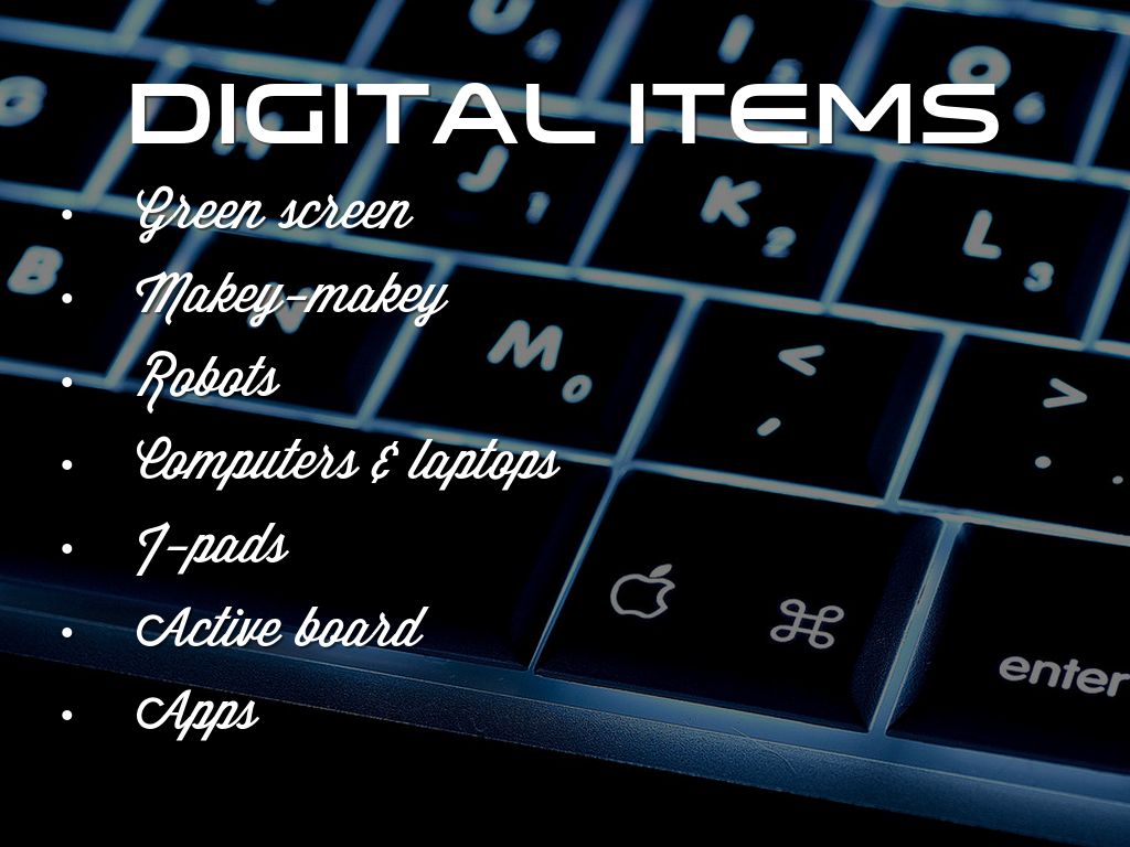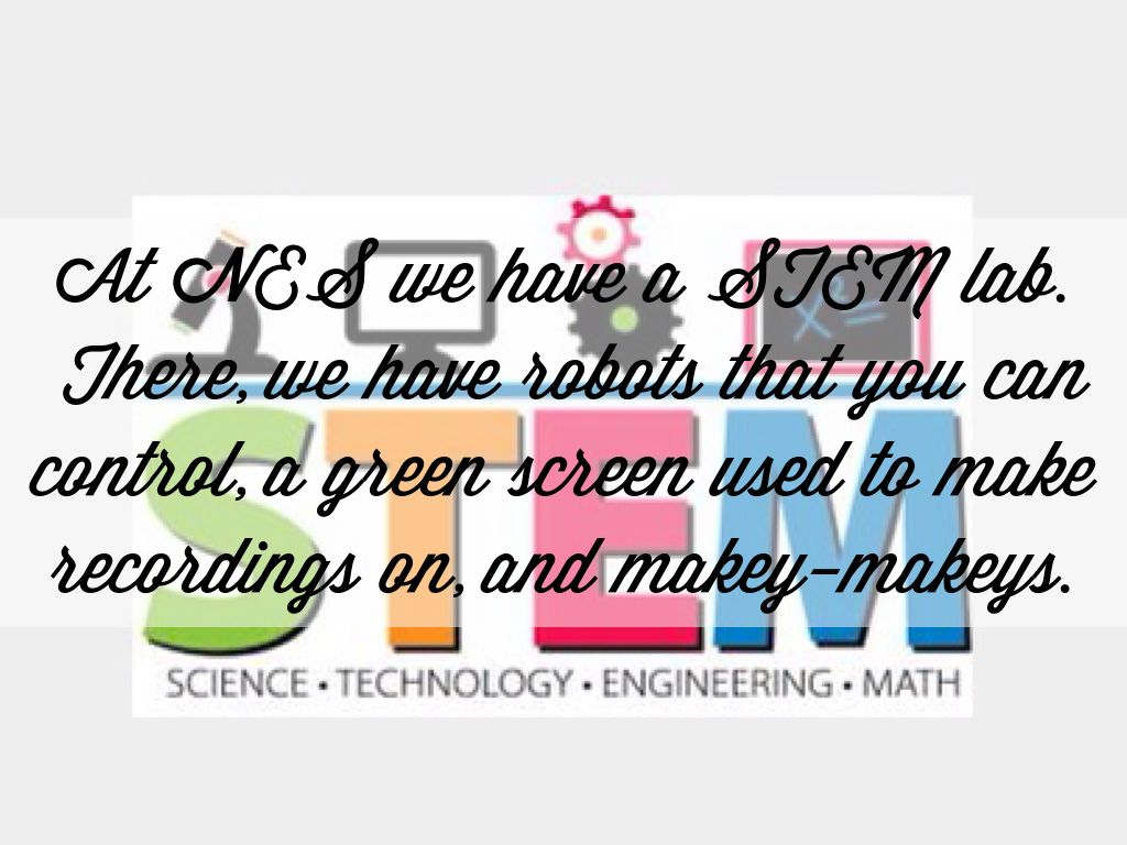 At NES we have a STEM lab. There, we have robots that you can control, a green screen used to make recordings on, and makey-makeys.