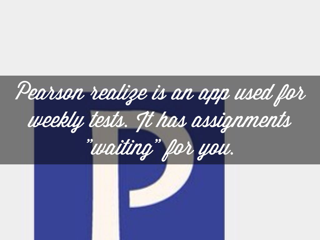 Pearson realize is an app used for weekly tests. It has assignments "waiting" for you.