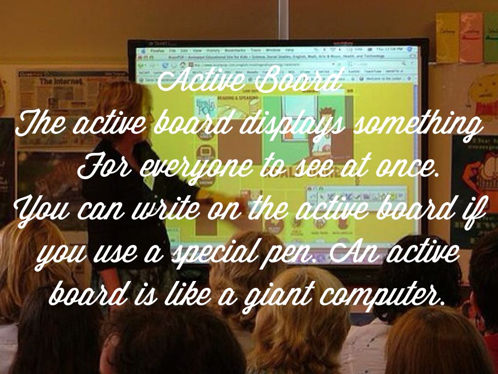You can write on the active board if you use a special pen. An active board is like a giant computer.