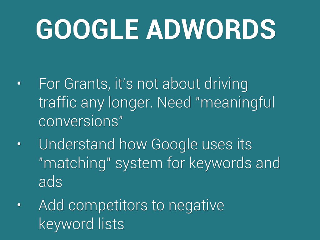 For Grants, it's not about driving traffic any longer. Need "meaningful conversions"