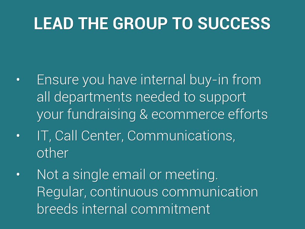 Ensure you have internal buy-in from all departments needed to support your fundraising & ecommerce efforts