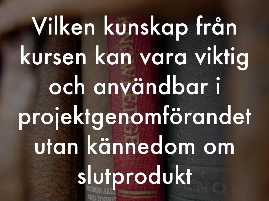 Vilken kunskap från kursen kan vara viktig och användbar i projektgenomförandet utan kännedom om slutprodukt