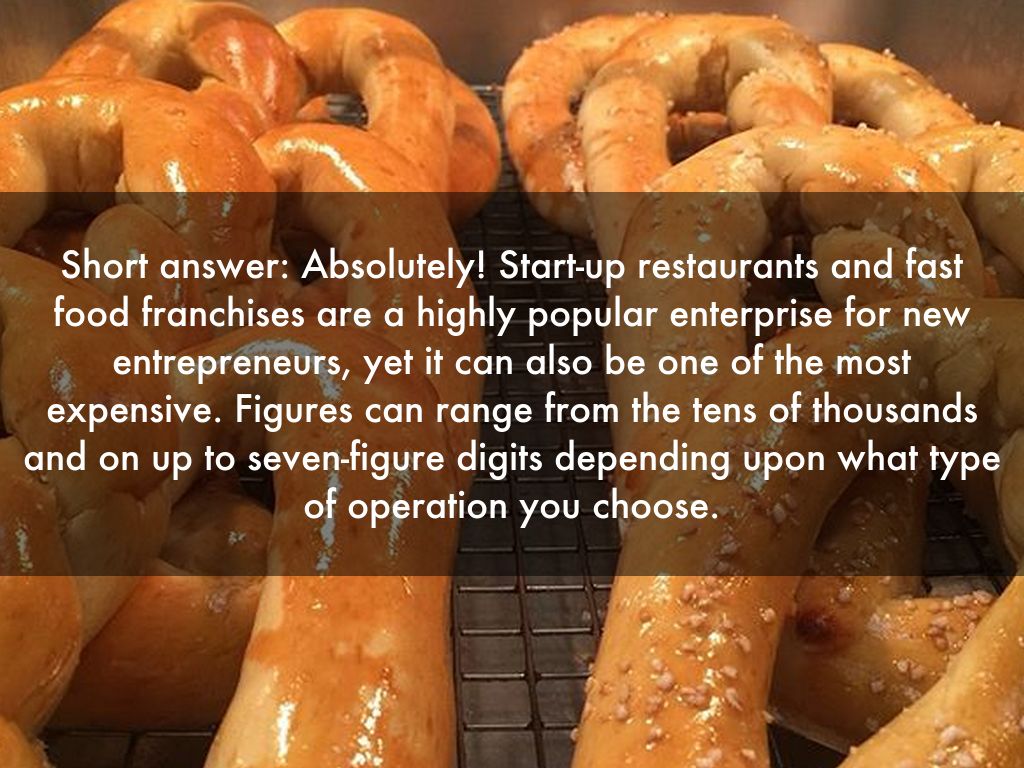 Short answer: Absolutely! Start-up restaurants and fast food franchises are a highly popular enterprise for new entrepreneurs, yet it can also be one of the most expensive. Figures can range from the tens of thousands and on up to seven-figure digits depending upon what type of operation you choose.