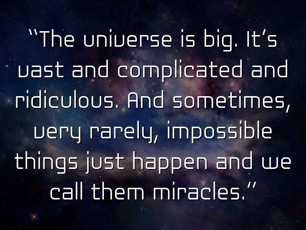 “The universe is big. It’s vast and complicated and ridiculous. And sometimes, very rarely, impossible things just happen and we call them miracles.”