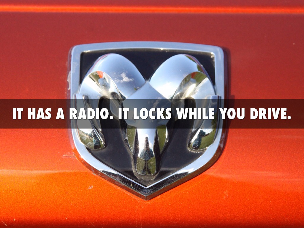 IT HAS A RADIO. IT LOCKS WHILE YOU DRIVE.